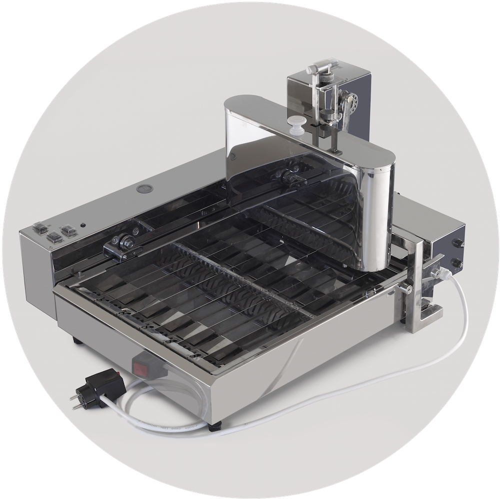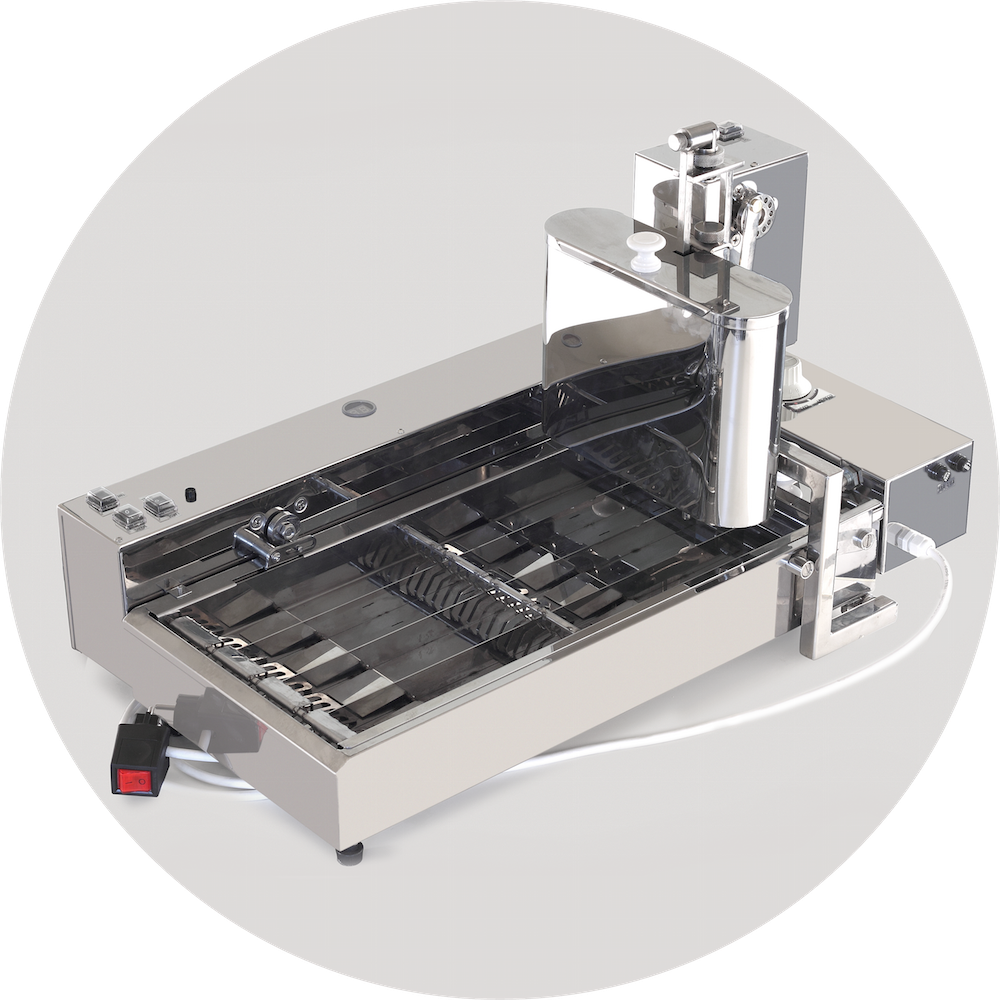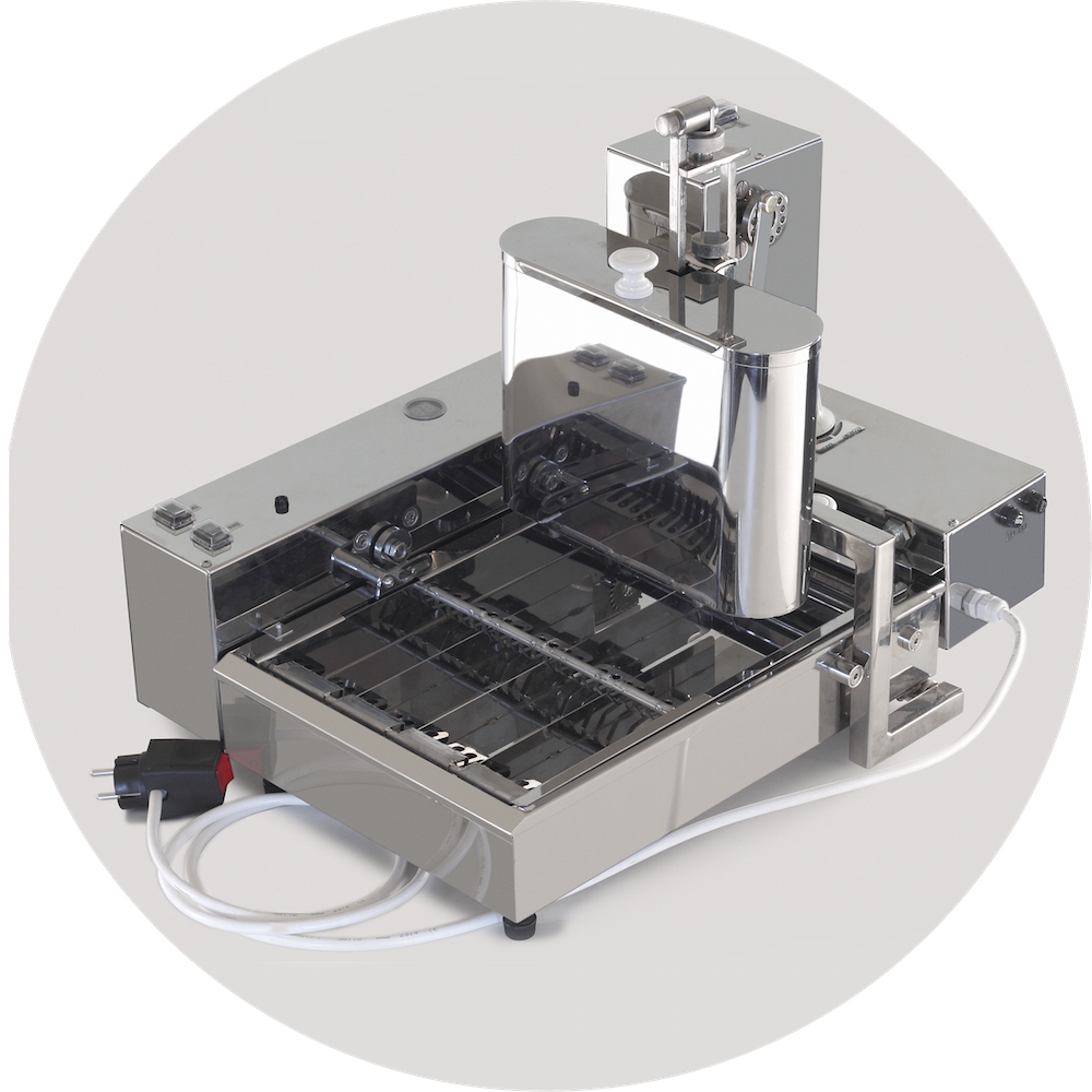 Mašina za prženje dolazi s spremnikom za kapaljke proizvoda i spremnikom ulja. Ova oprema s 6 redova ima impresivan učinak do 900 mini krafni na sat.